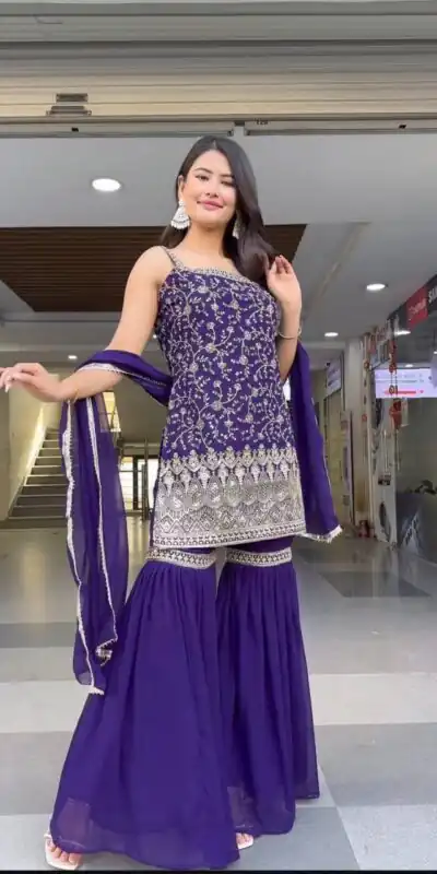 Purple Fox Georgette Sequence Lace Work Salwar Suit