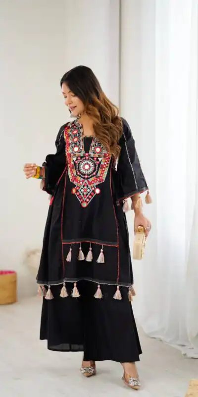 Pure Rayon Cotton With Embroidery Sequence Work With Real Mirror Work