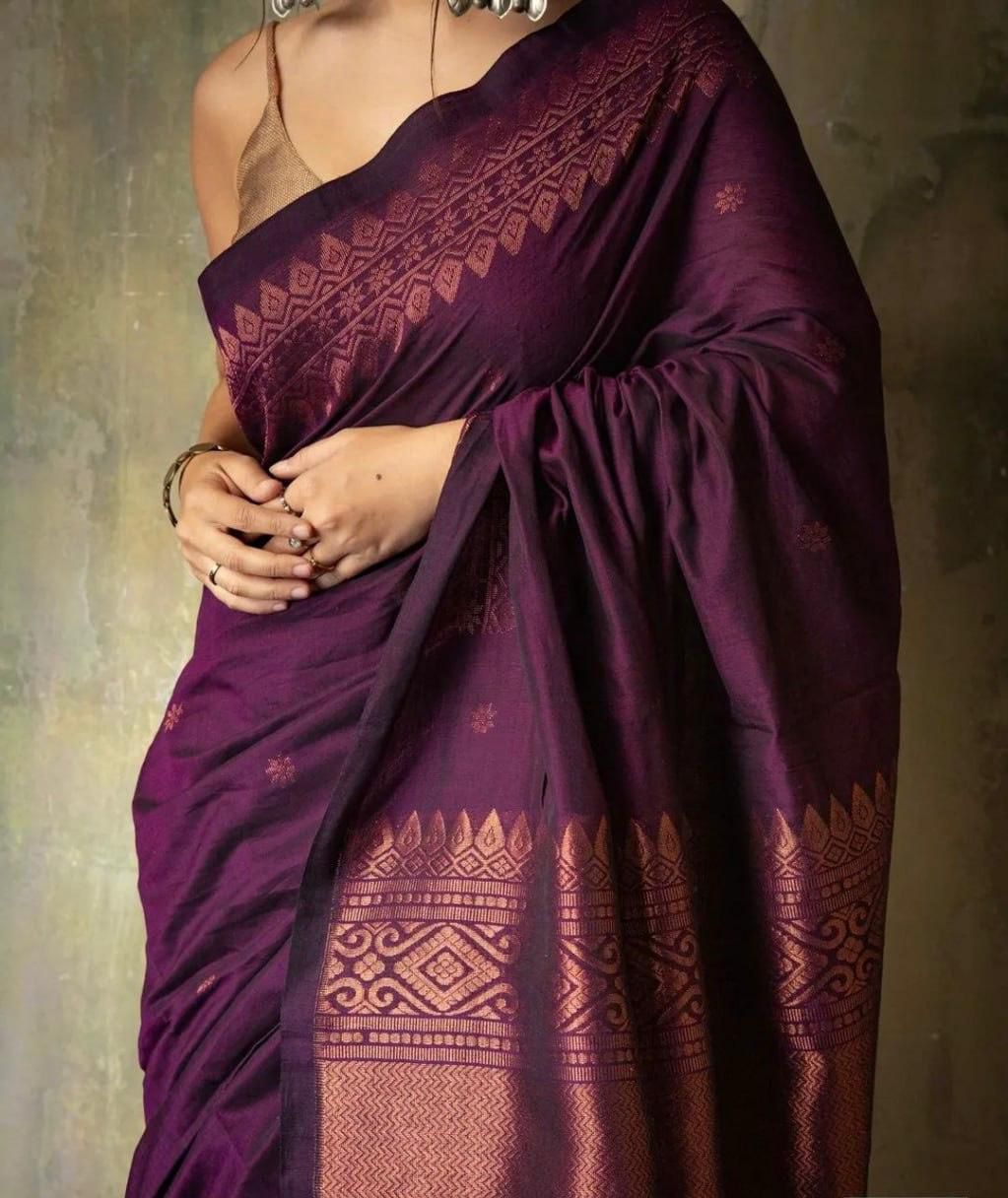 Purple Soft Lichi Silk Border Lace Saree