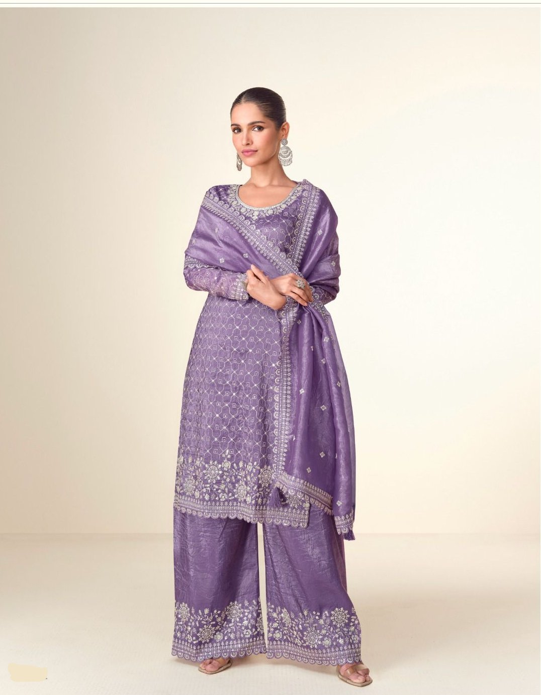 Purple Tissue Crush Embroidery Work Salwar Suit