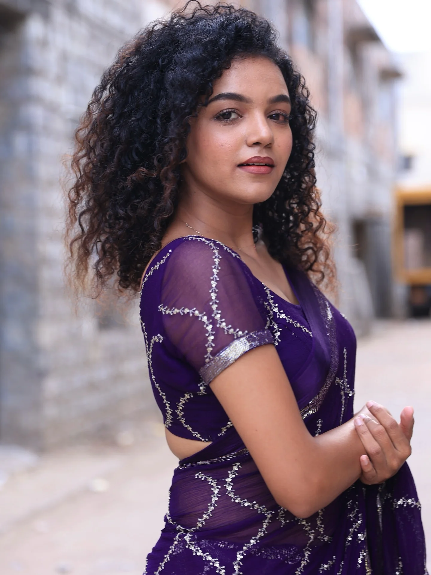 Georgette Indian saree ki beads minimal hain; agar fully glam chahiye toh aur embellishment wala option better rahega.