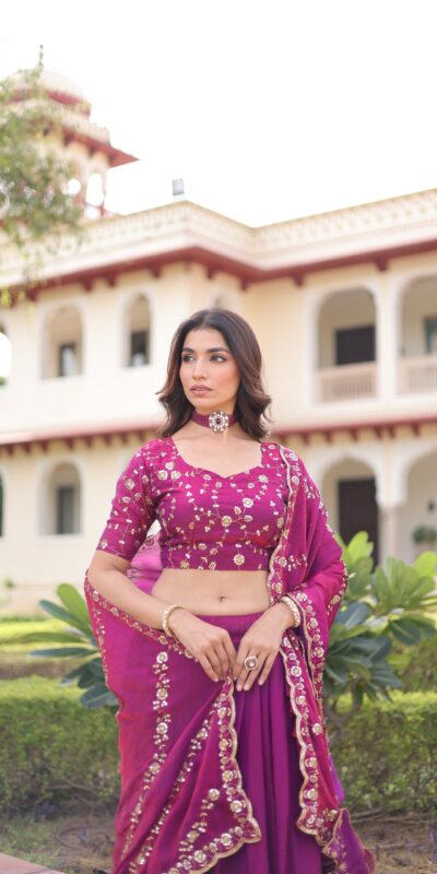 Rani Pink Fandy Silk With Sequins Work Lehenga Choli