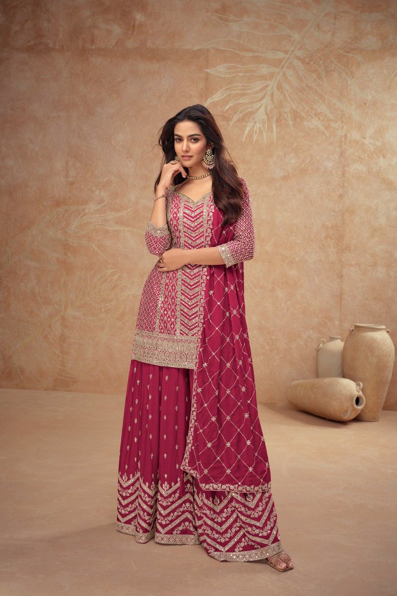 Top :- Heavy Chinon With Sequence Embroidery Stitch Work