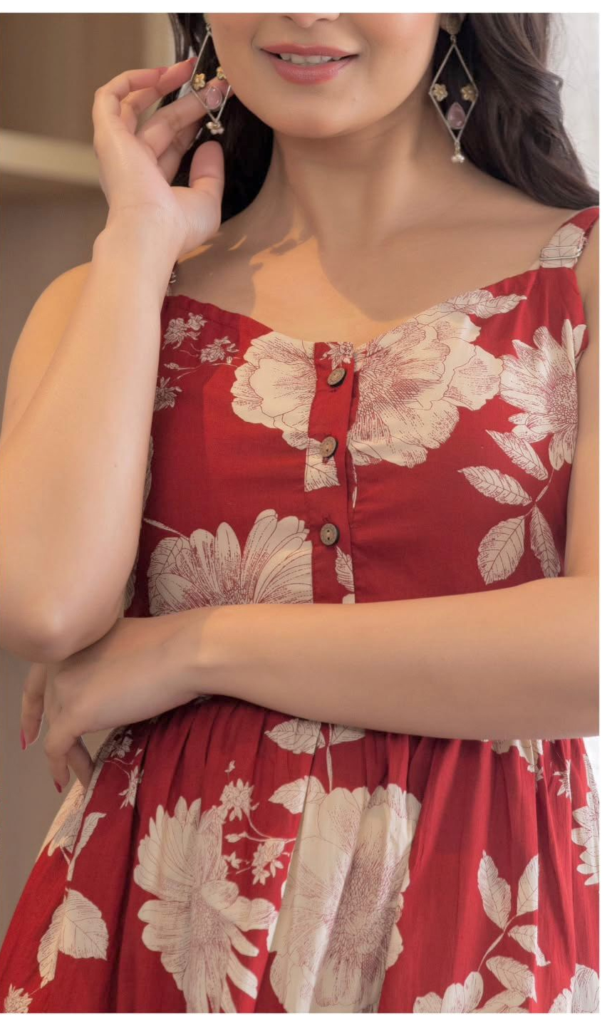 Red Cotton With Printed Gown