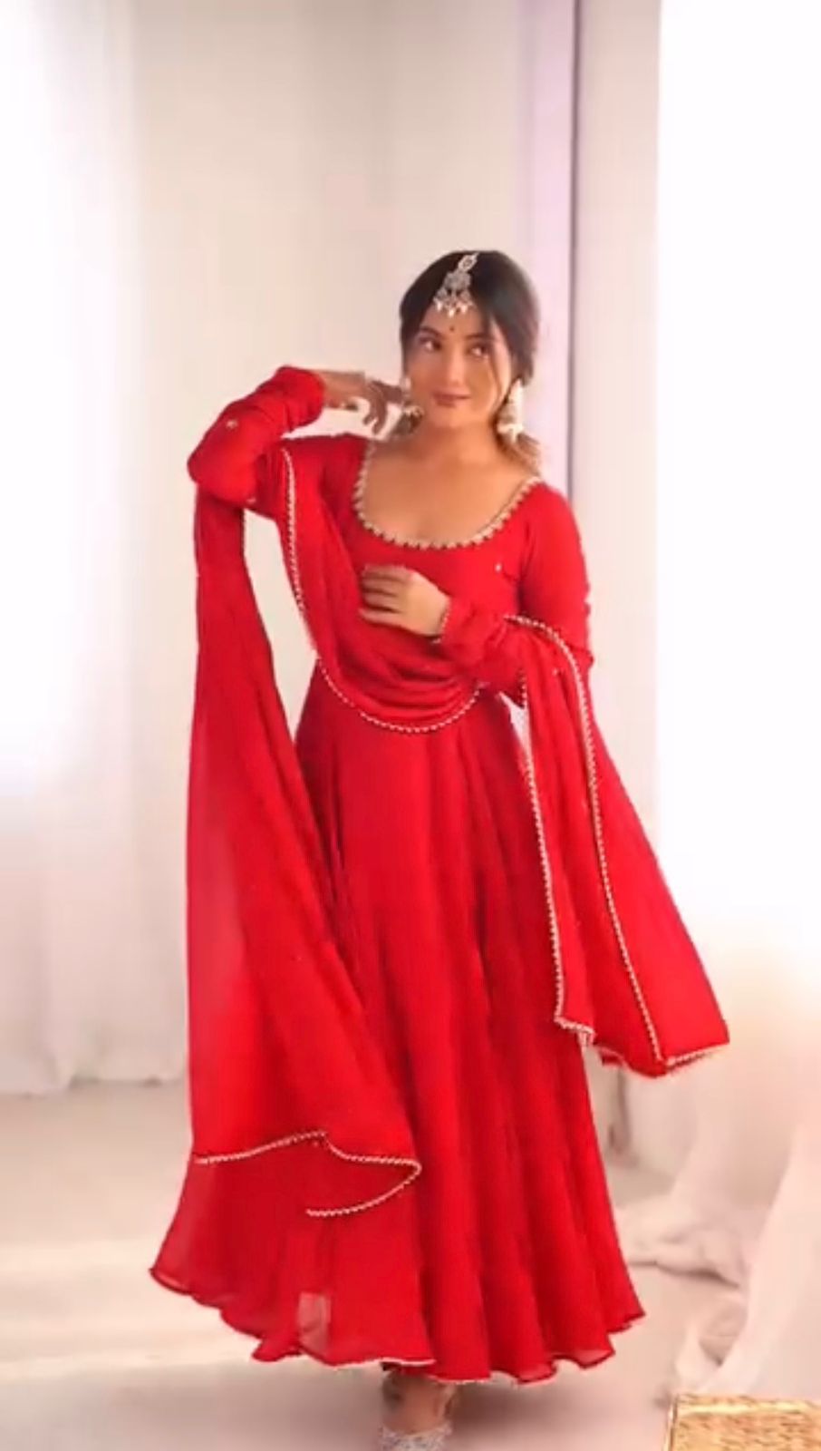 LKD 1527 Red in Faux Georgette ace Work Gown . Wedding, Party, Festive, Events, Exclusive Offer ₹2049. Delivery 4-6 Working Days. Shop now. | Bollywood Gowns, Creative Gowns, Designer Gowns, Embroidered Gowns, Gowns, Party Wear Gowns