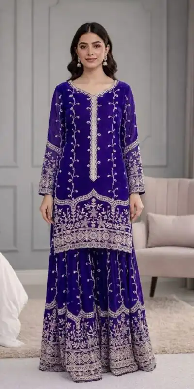 Top Fabric : Pure Fendy Silk With Embroidery Sequence Work And Full Sleeve