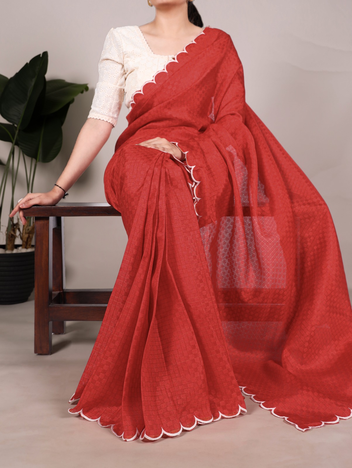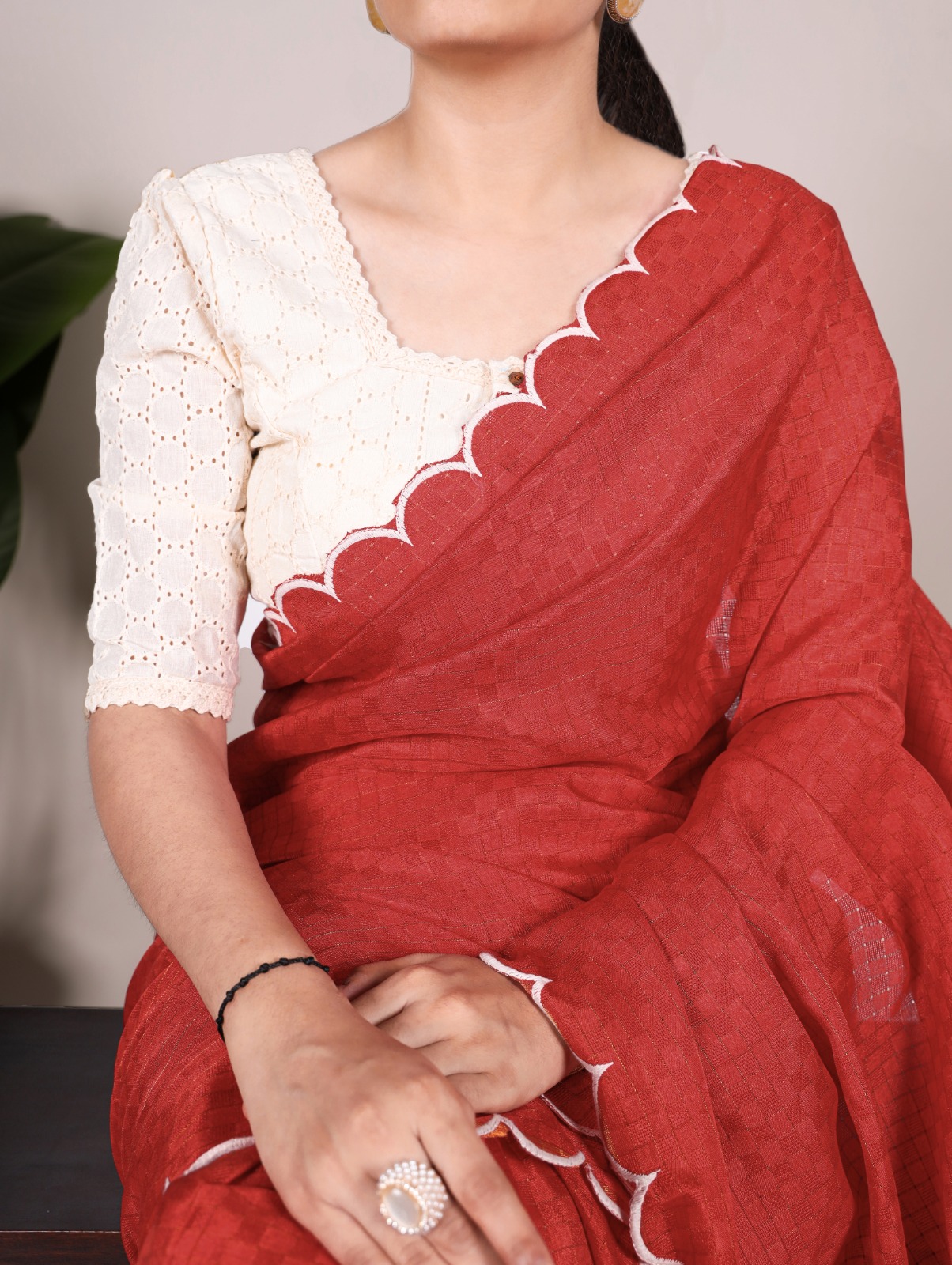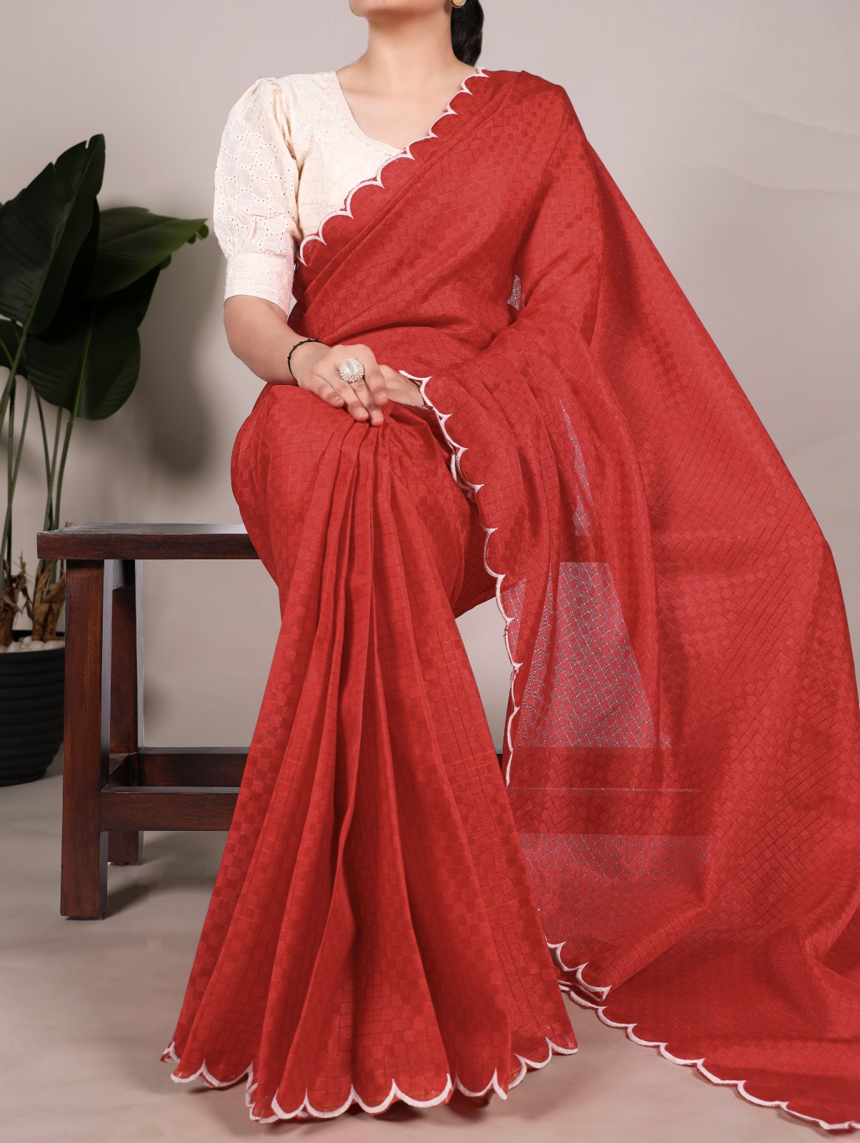 25 reviews for Red Gadhawal Arca Work Saree