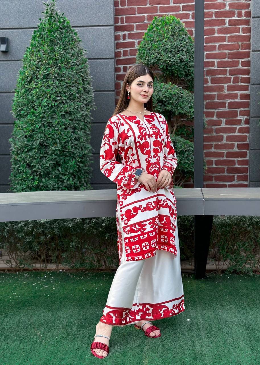 Red Natural Crape Digital Print Salwar Suit