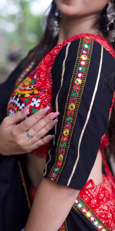 Lehenga Work : Printed And Gamthi work With Mirror work