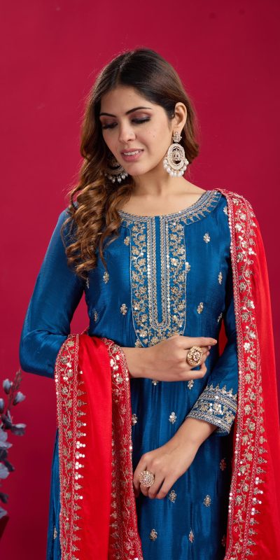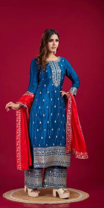 SRK 5231 Blue Color Pure Chinnon Silk With Embroidery Sequence Work Salwar Suit Casual, Wedding, Party, Festive, Events Etc.4-6 Working Days@ 1899/-only