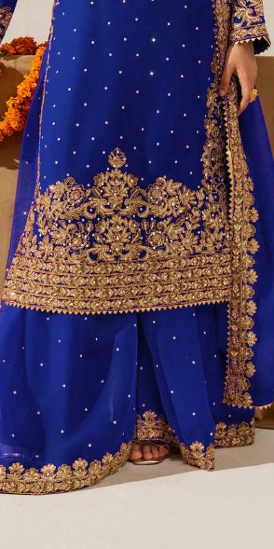 Royal Blue Faux Georgette Lace Work Salwar Suit