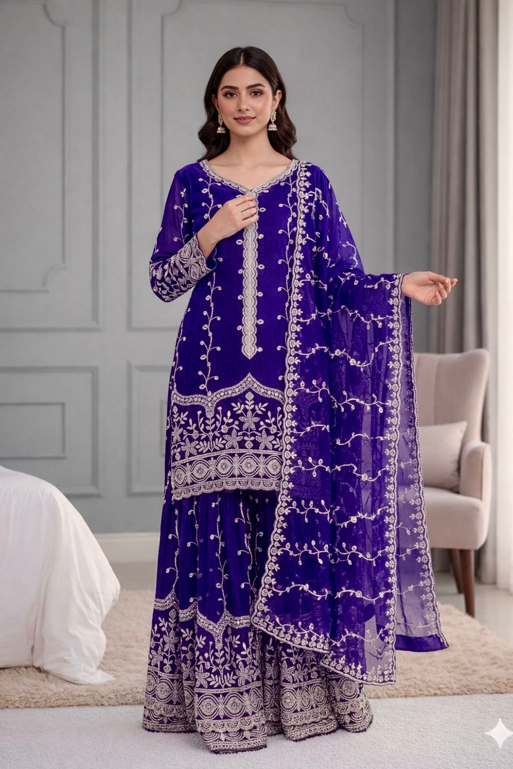 Dupatta Fabric :Pure Fendy Silk With Heavy Embroidery Sequence Work