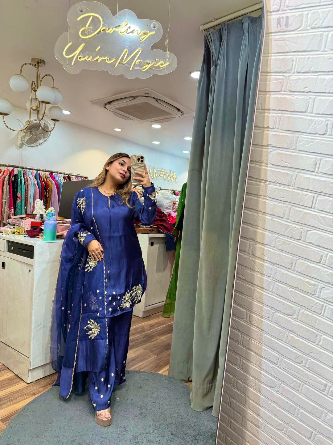 Royal Blue Natural Crep Silk Embroidery Salwar Suit