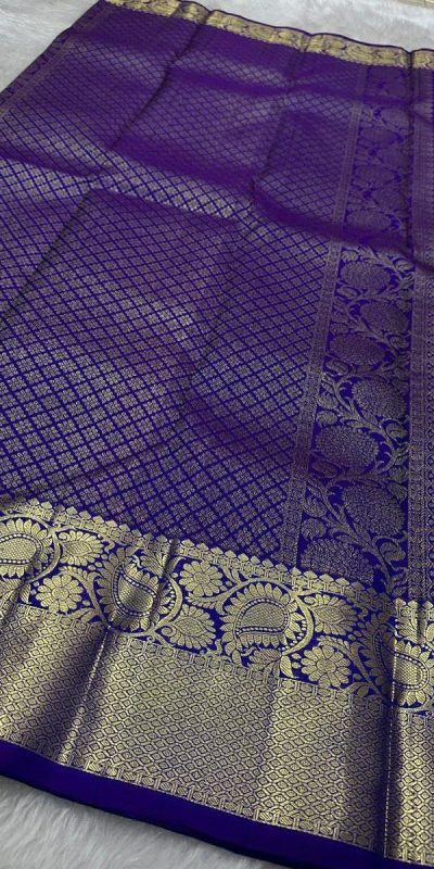 Royal Blue Soft Lichi Silk Lace Zari Work Saree