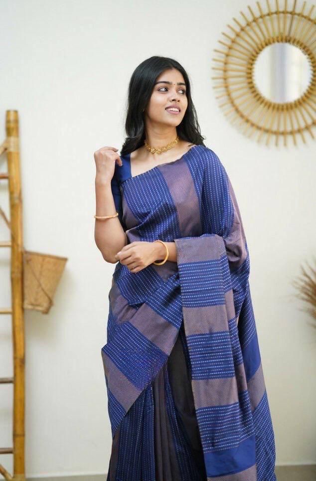 Royal Blue Soft Lichi Silk Rich Pallu Work Border Saree