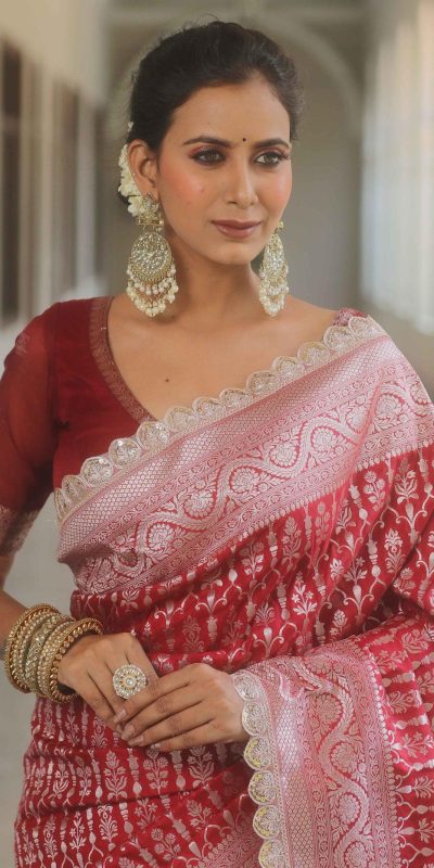 Royal Red Color Jacquard Embroidery Cording Lace Saree