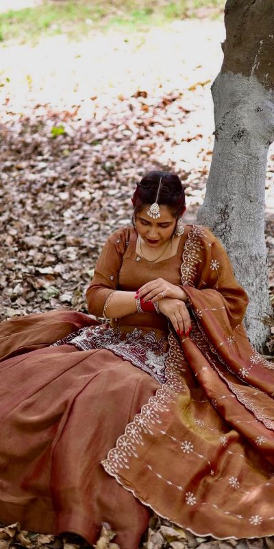 Rust Simmer Silk Embroidery Work Lehenga Choli