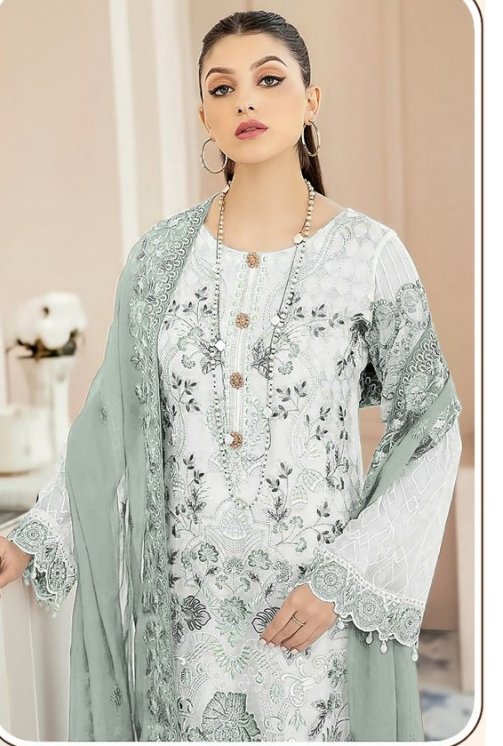 Fabric Details :- Top :-Heavy Georgette With Embroidery work -Zarkan Sleeves :-Heavy Georgette With Embroidery work Inner :-Dull Santoon Bottom :-Dull Santoon Dupatta :-Heavy Georgette With Embroidery work Length :- Max up to 41 |