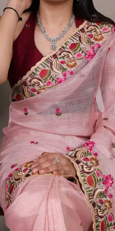 Sea Green Zari Kota Tissue Embroidery Zari Work Saree