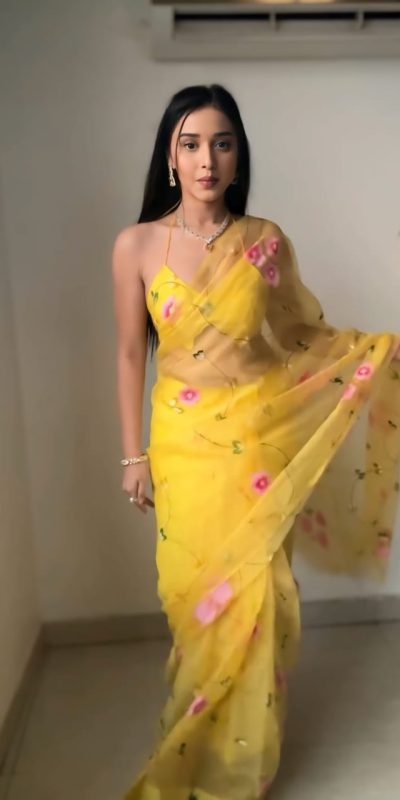 Fabrics Saree Fabric : pure soft Organza  silk Saree Work : All over the body Saree : 5.5 Mtr Blouse Fabric :Yellow Blouse Blouse : 0.80 Cmtr Ready To Wear saree