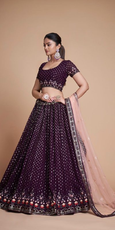 Sightly Coffee Color Georgette Embroidery Sequins Lehenga Choli