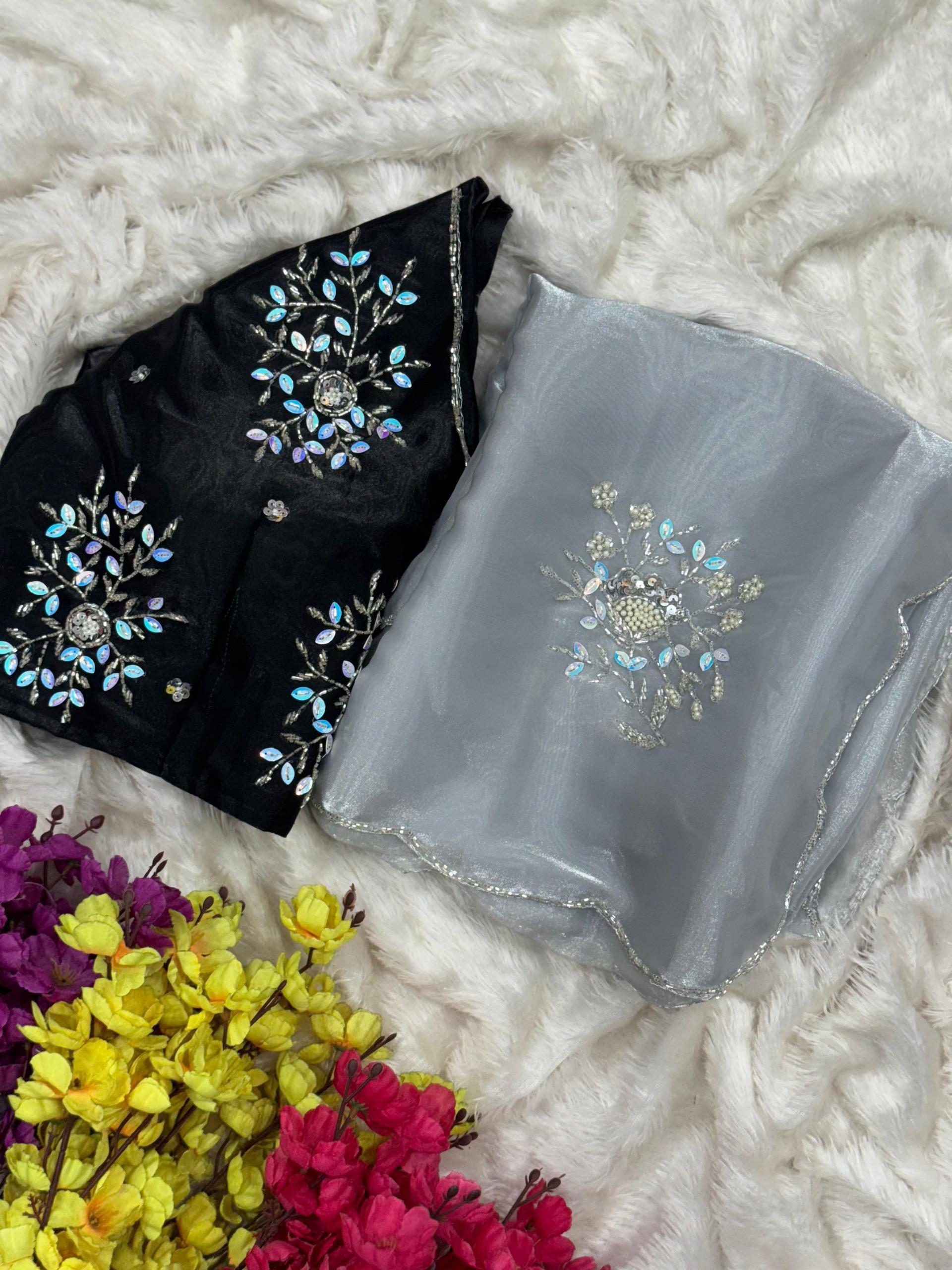Saree Fabric : Soft Jimmy Chuu Saree Work : Heavy Handwork Butta All Over Saree Moti,