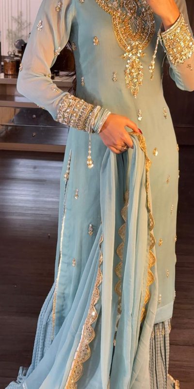 SRK 5251Sky blue Color Georgette Sequence Beads Work Salwar Suit Casual, Wedding, Festive, Events . Expected Delivery 4-6 Working Days @2149/- only