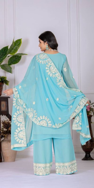 Sky Blue Faux Georgette With Embroider Salwar Suit