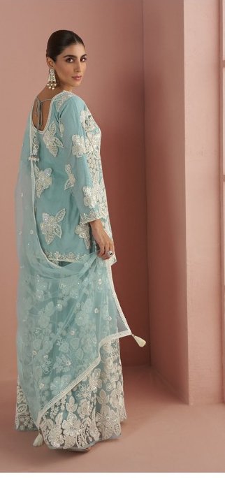 Sky Blue Heavy Net Sequence Work Salwar Suit