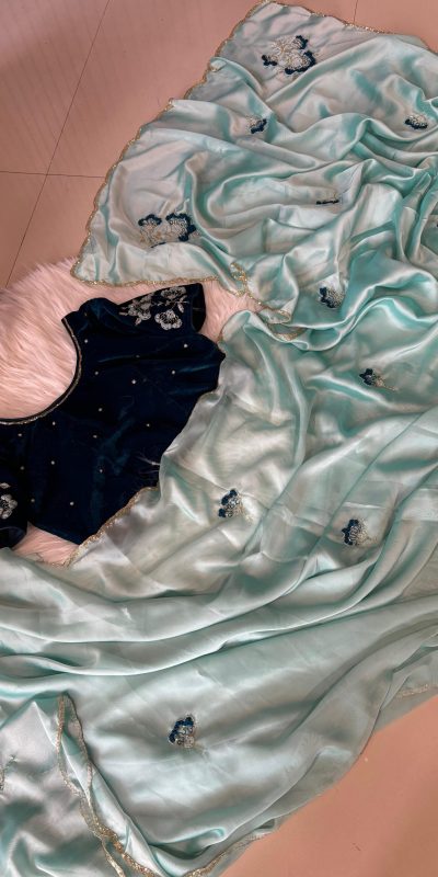 Sky Blue Rangoli Silk Lace Resham Work Saree