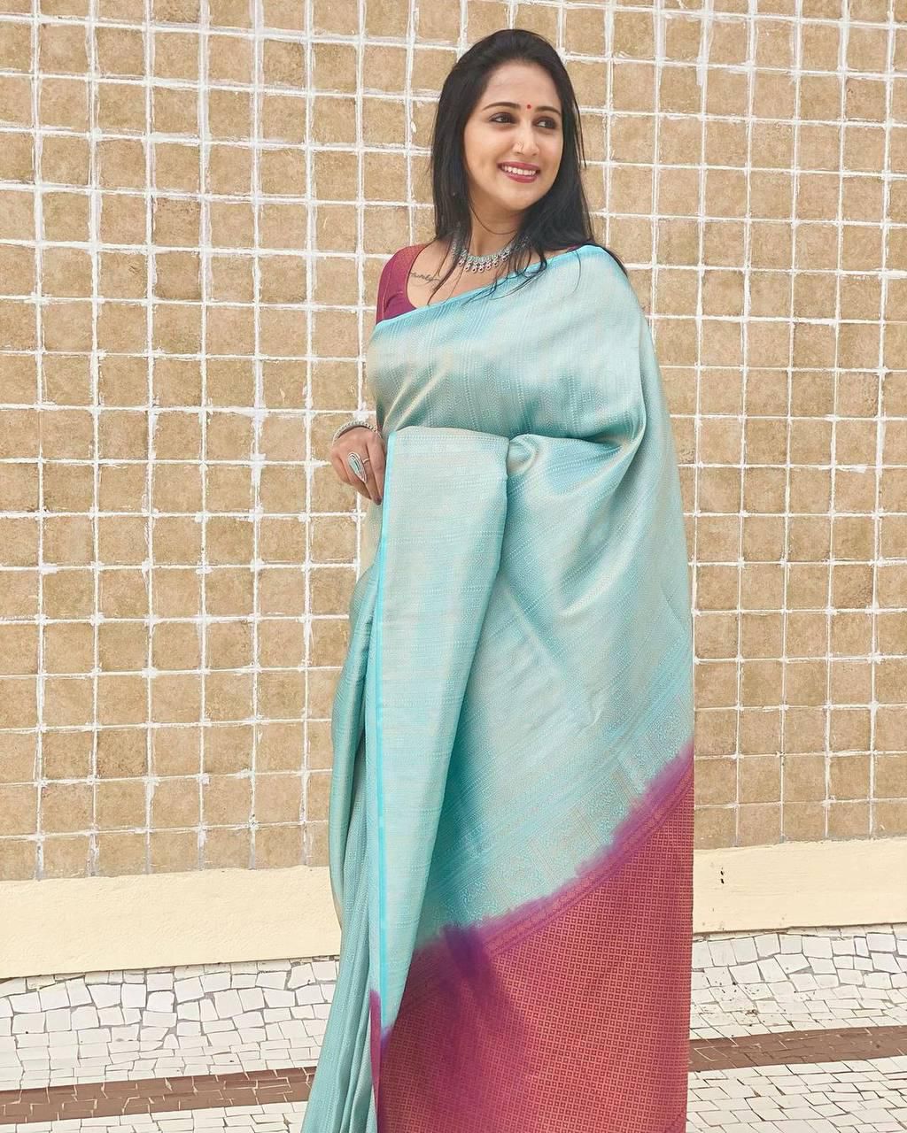 Sky Blue Soft Lichi Silk Lace Work Border Saree
