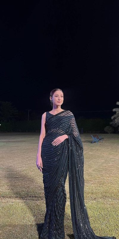 Special Black Color Georgette Embroidery Sequence Work Saree