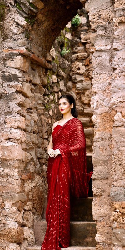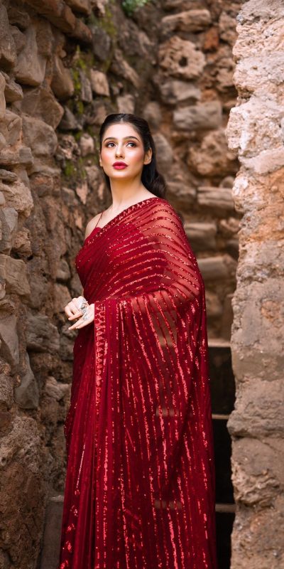 Special Red Color Georgette Embroidery Sequence Work Saree