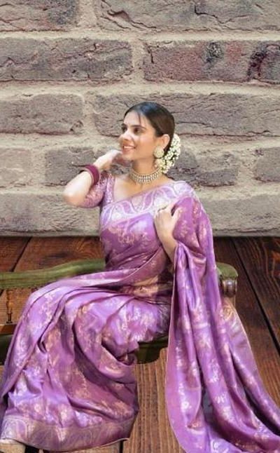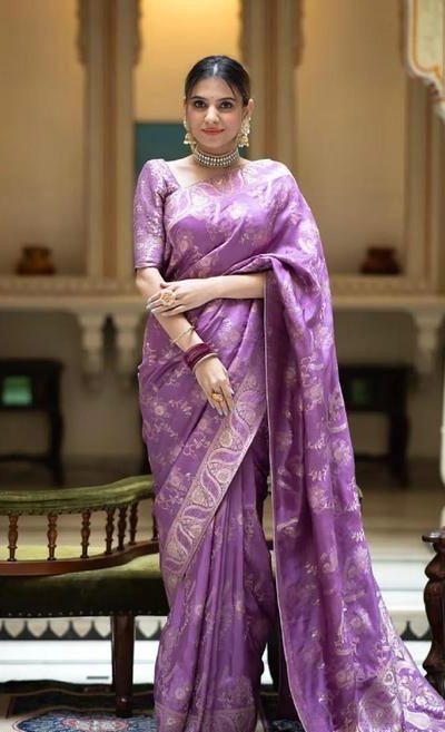 Splendorous Light Purple Soft Lichi Silk Jacquard All Over Saree