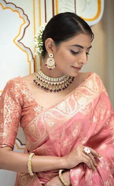 KP 5072B Peach Color Soft Lichi Silk Jacquard On All Over Saree Casual, Party Wear, Wedding, Events Etc. Expected Delivery 4-6 Working Days @1499/-