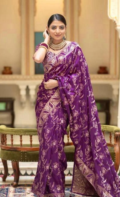 Splendorous Purple Color Soft Lichi Silk Jacquard All Over Saree