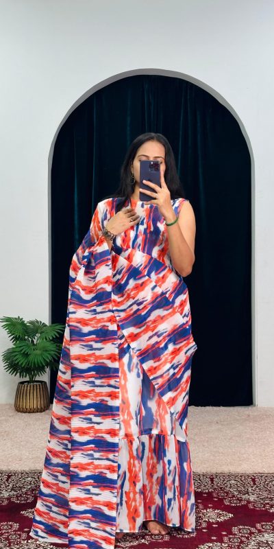 ST 1051 Blue Color Georgette Digital Printed Work Saree Casual, Wedding, Party, Festive, Events Etc. Expected Delivery 4-6 Working Days @1849/-