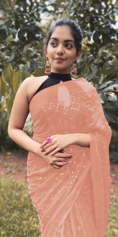 KT 201 Light Orange Color Georgette Fancy Sequence Work Saree Casual, Party Wear, Wedding Expected Delivery 4-6 Working Days@1649/-