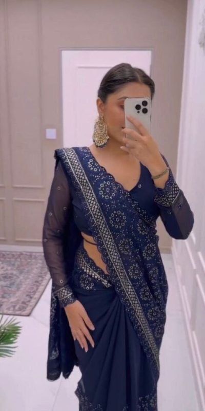 Stylish Navy Blue Color Georgette Embroidery Sequence Saree