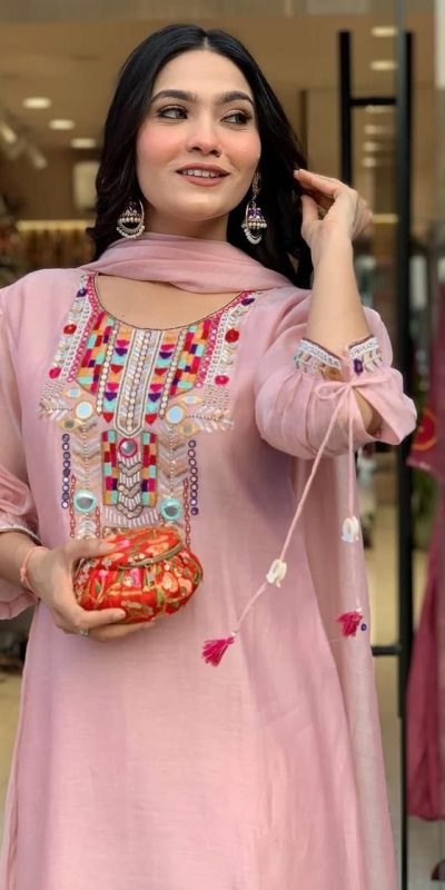 Inner : heavy Cotton Silk Length : 47 Inch Size: Free Size Semi Stitched bottom fabric : for comfort and matching the outfit’s simplicity pent Length : 40 dupatta : Minimalist embellishments with delicate mirror work embroidery ensuring a balanced aesthetic |