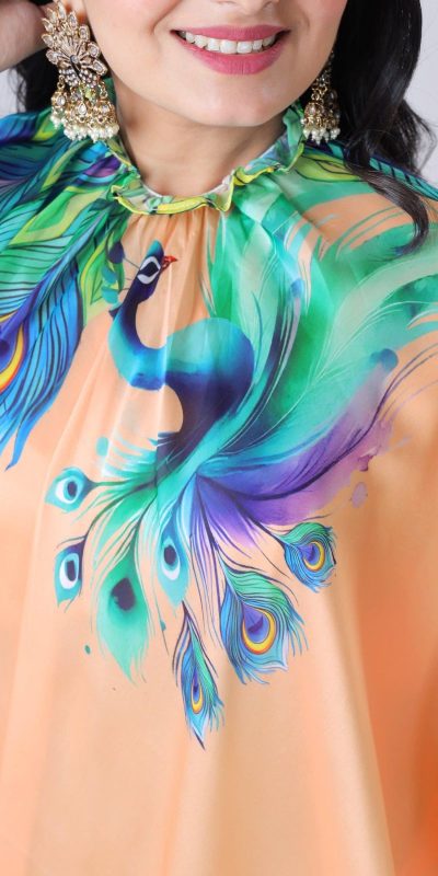 ST 1102 Peach Color Japan Satin Digital Print Work Saree Casual, Wedding, Festive, Events . Expected Delivery 4-6 Working Days @1849/- only