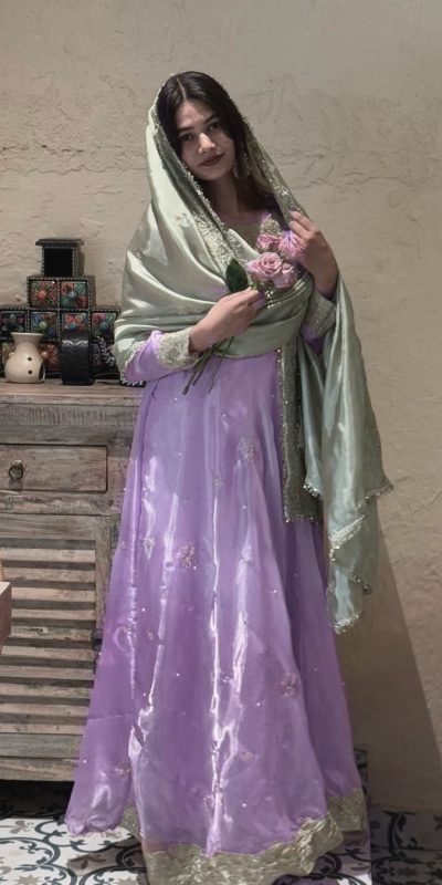 Adorable Purple Color Butterfly Net And Embroidery Work Sharara