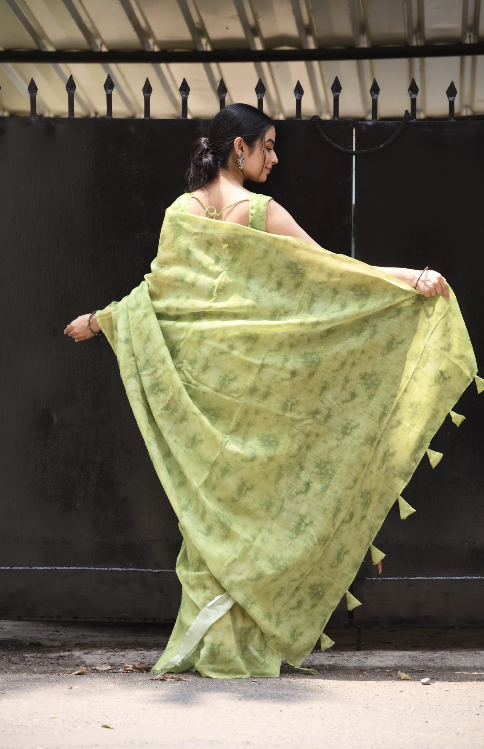 Sublime Green Color Linen Beautiful Digital Printed Work Saree