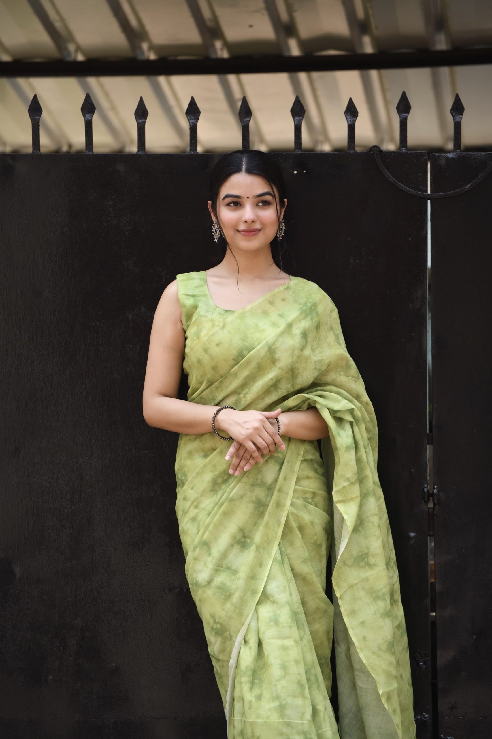 Veechis 101 Green Color Linen Beautiful Digital Printed Work Saree Casual, Party Festive, Events. Expected Delivery 4-6 Working Days @1549/-