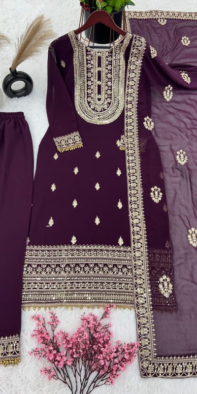 SRK 5162 Purple Color Faux Georgette Embroidery Salwar Suit Wedding, Party, Festive, Events Expected Delivery 4-6 Working Days @ 1999/-