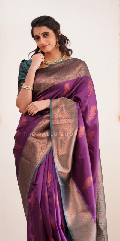 Sublime Purple Color Soft Silk Copper Zari Design Spread Saree