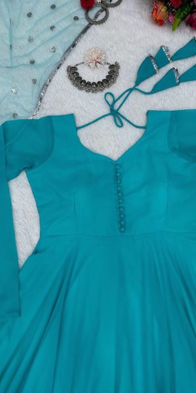 Superb Blue Color Faux Georgette Plain Work Anarkali Suite