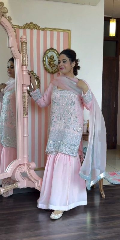 Sharara Palazzo : Heavy Faux Georgette Material With 5mm Sequence Embroidery work Belt with Ready Made Less.