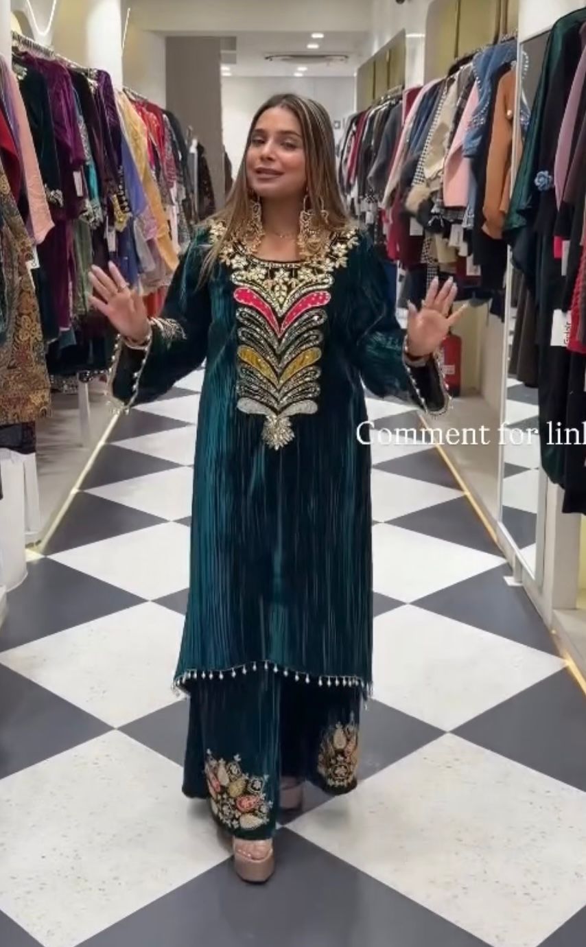 Teal 9000 Velvet Lace Embroidery Work Salwar Suit