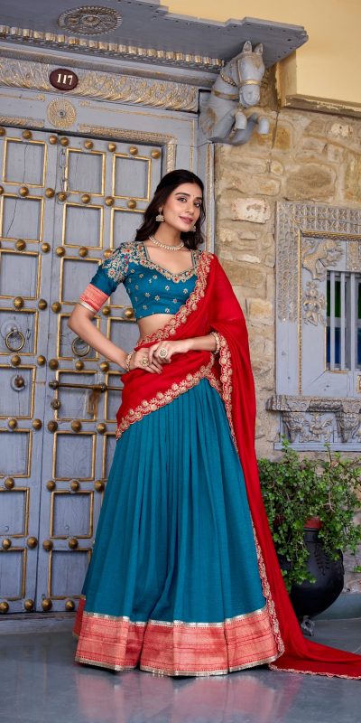 Teal Vichitra Silk Embroidery Zari Work Lehenga Choli